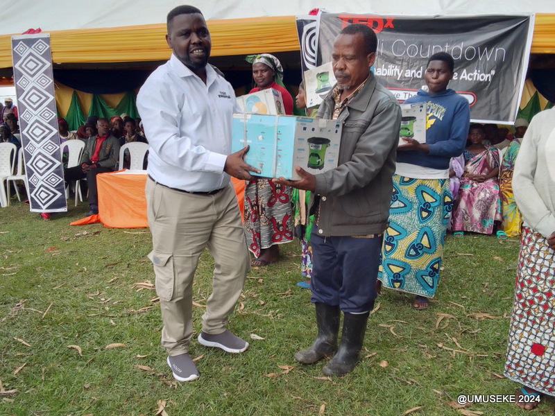 Cyiza Sadam Hussein umuyobozi w’ikigo cya TEDD Kigali ari na cyo cyatanze iyi nkunga yasobanuriye Abanya-Rutsiro ibyiza by’amashyiga bahawe mu kubungabunga ibiti n’ibyiza by’umwuka, uva muri pariki baturiye.