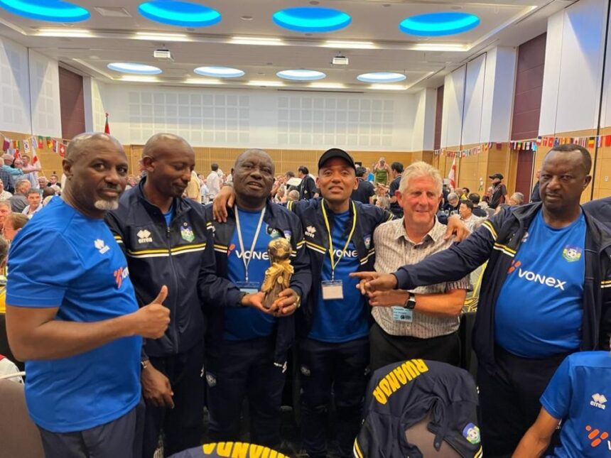 Bamwe mu bagize ikipe y’Igihugu y’u Rwanda, barimo Hadji Rutikanga Hassan, Bayingana Alphonse, Ramba Afrika uyobora Ishyirahamwe rya Walking Football mu Rwanda n’abandi barimo nka Igan uyitoza ndetse na Hadji yussuf Mudaheranwa.